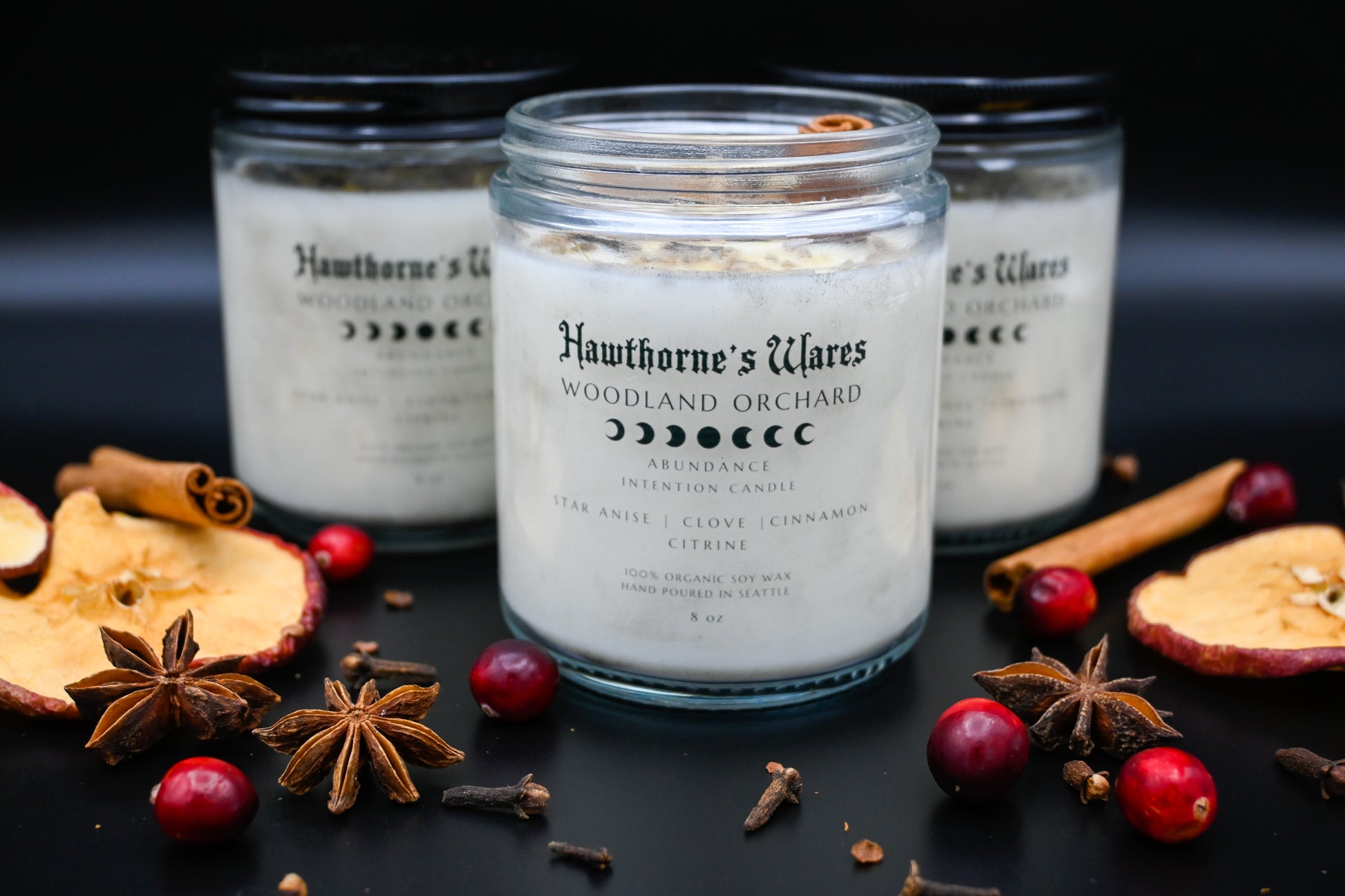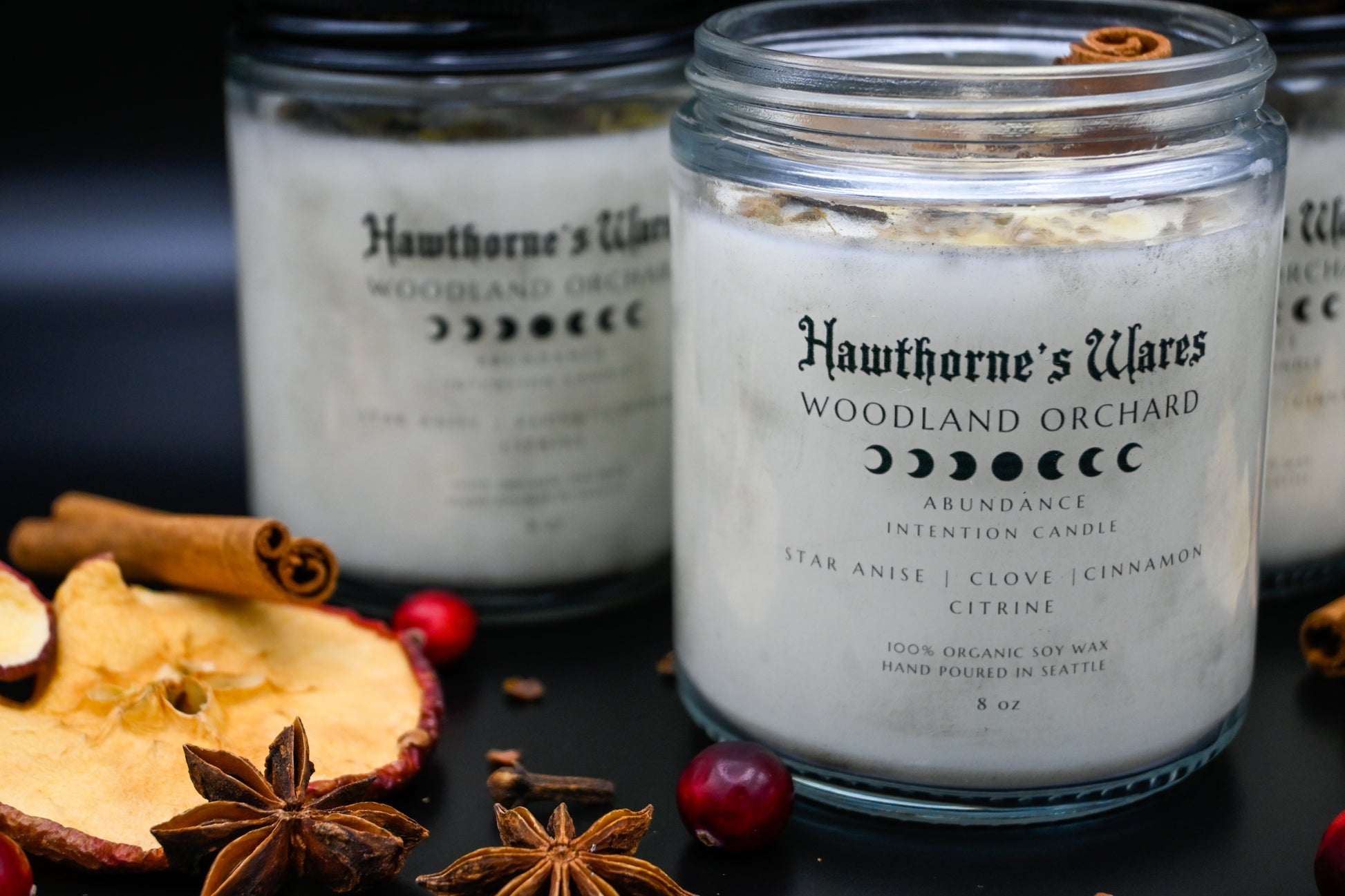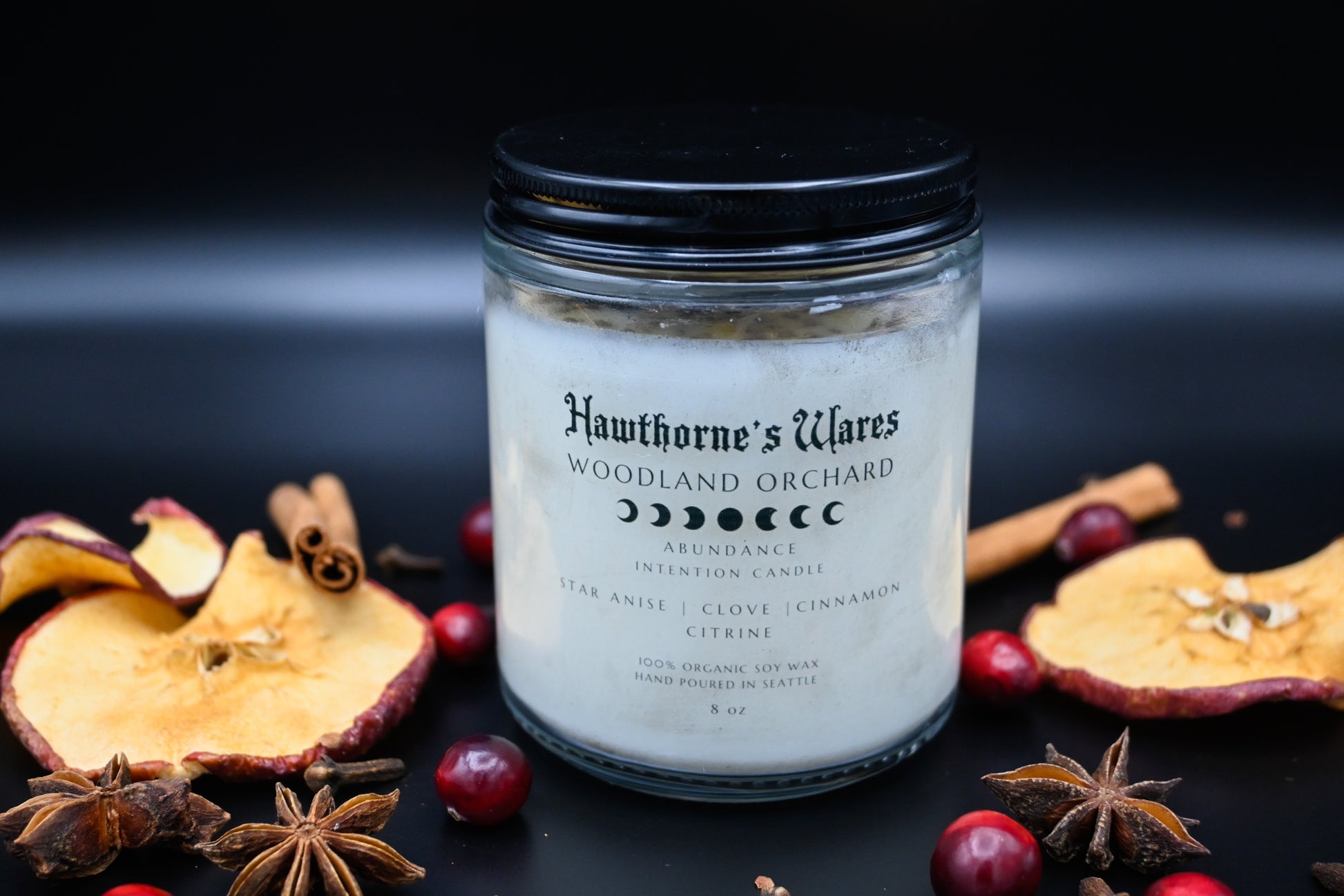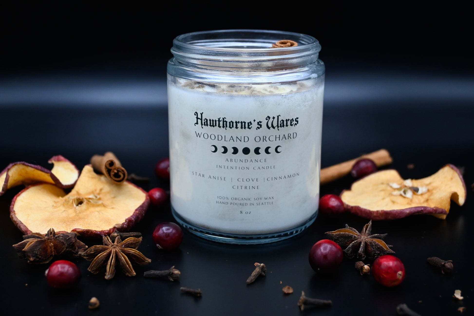 Bring all of the things you want into your life, be abundant in all you do and all you receive, feel abundant in all things you do and are in life. When lighting your new intention candle, simply clear your mind and imagine all the things you want in life coming to you with ease. Everything you desire, flowing into your life and manifesting into reality. Take a nice deep breath, feel the calming aromas of our pine, cranberry and apple orchards fill your senses, exhale deeply and feel negativity flow out of your life. Feel yourself in a forest of inspiration, sprinkled with clove, cinnamon, and strategically placed star anise and cinnamon sticks to promote abundance of riches and and positivity. Each candle comes with a beautiful raw citrine for you to keep and enjoy.
