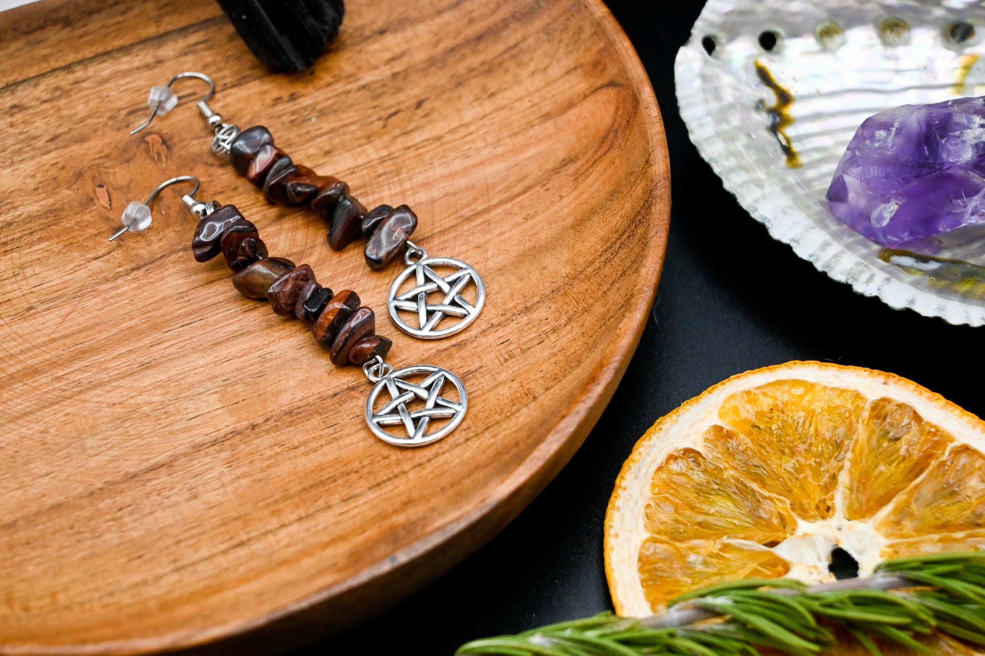 Our earrings range from amethyst to tigers eye, hematite to blue apatite, aquamarine to rose quartz, different agate stones and more!