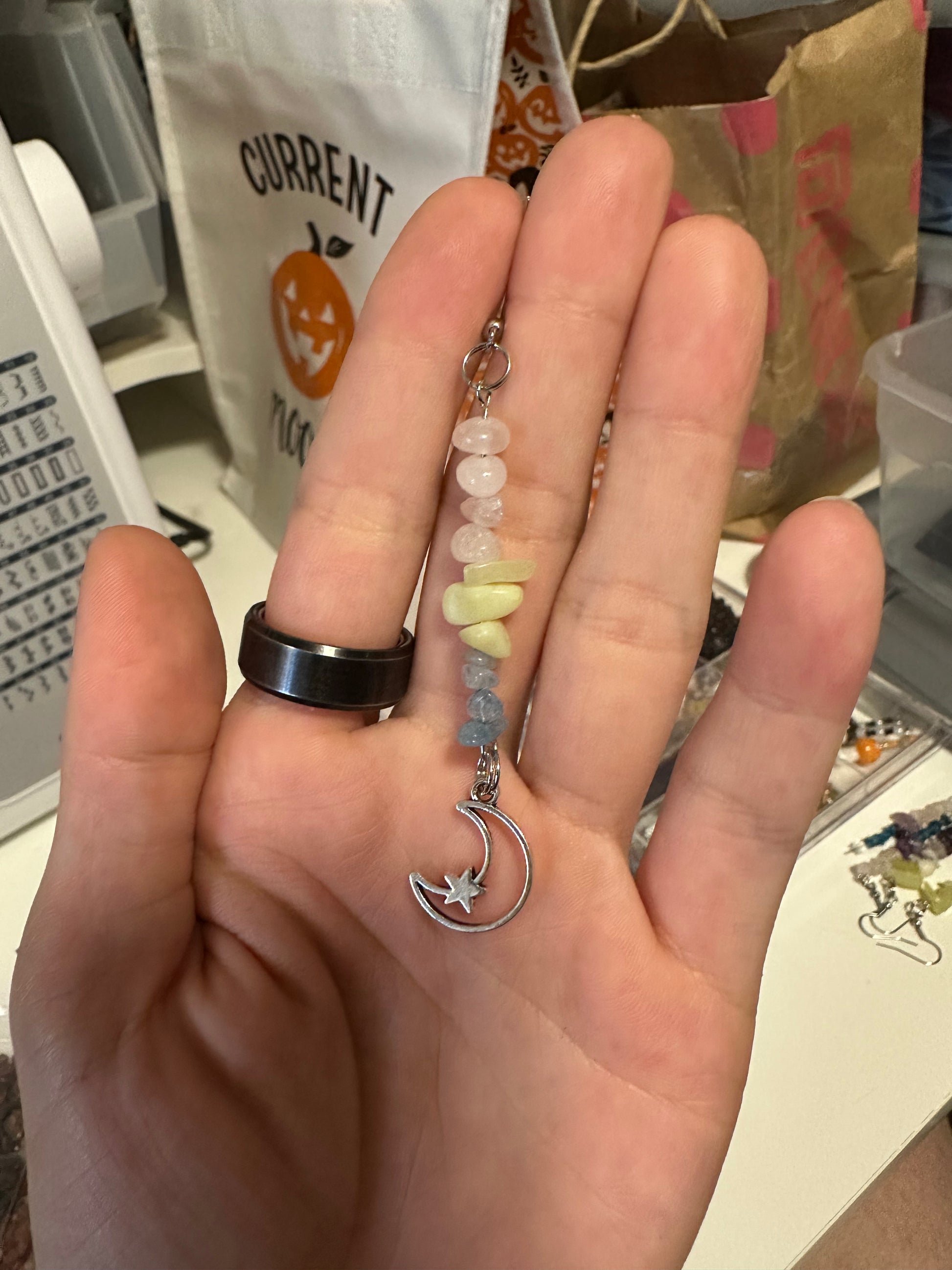 All beads and charms are sourced by hand and vary in materials. Beads and charm materials may include glass beads, wooden beads, real crystal beads, gemstone beads, and silver backed charms with acrylic or resin.