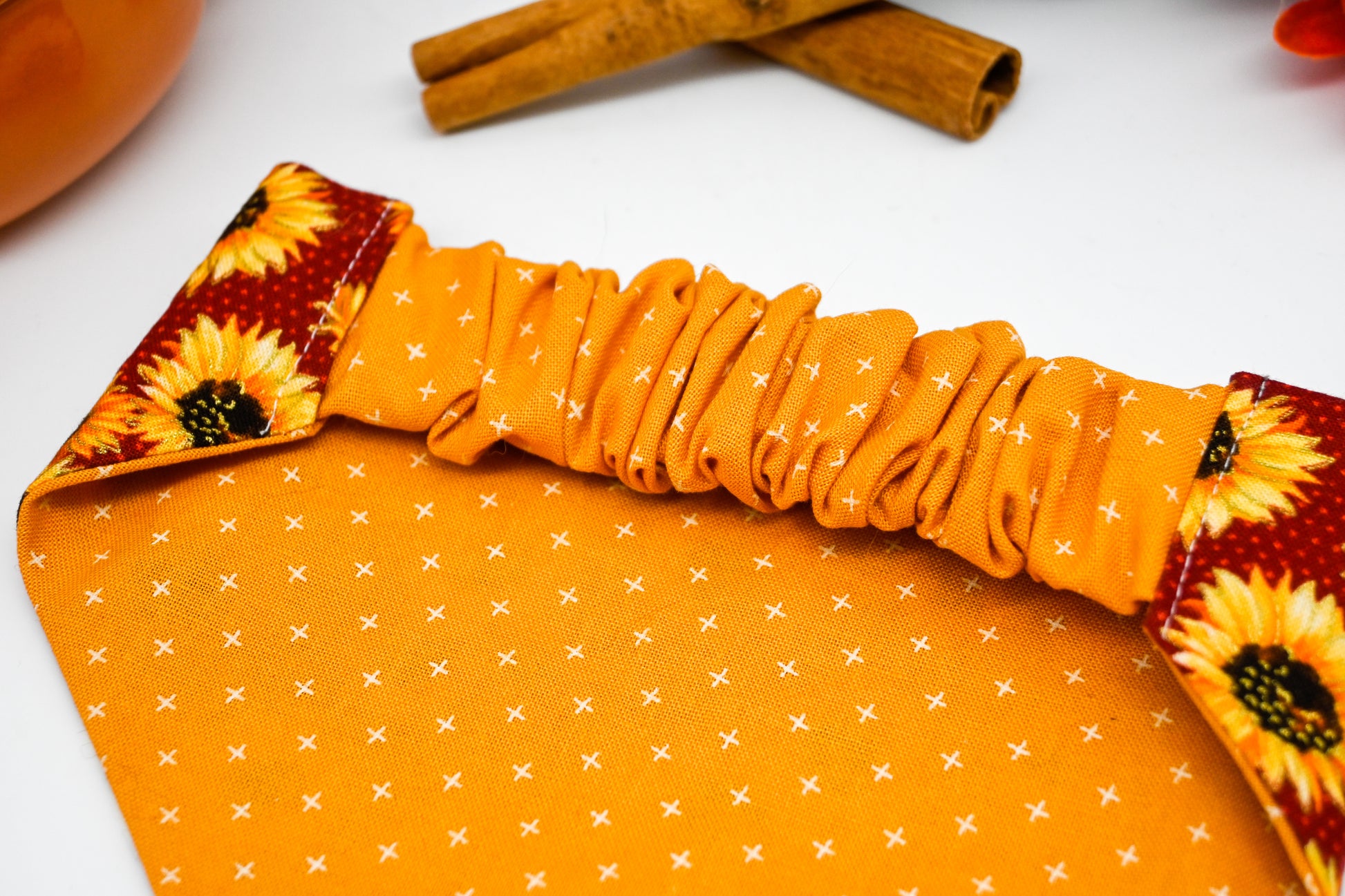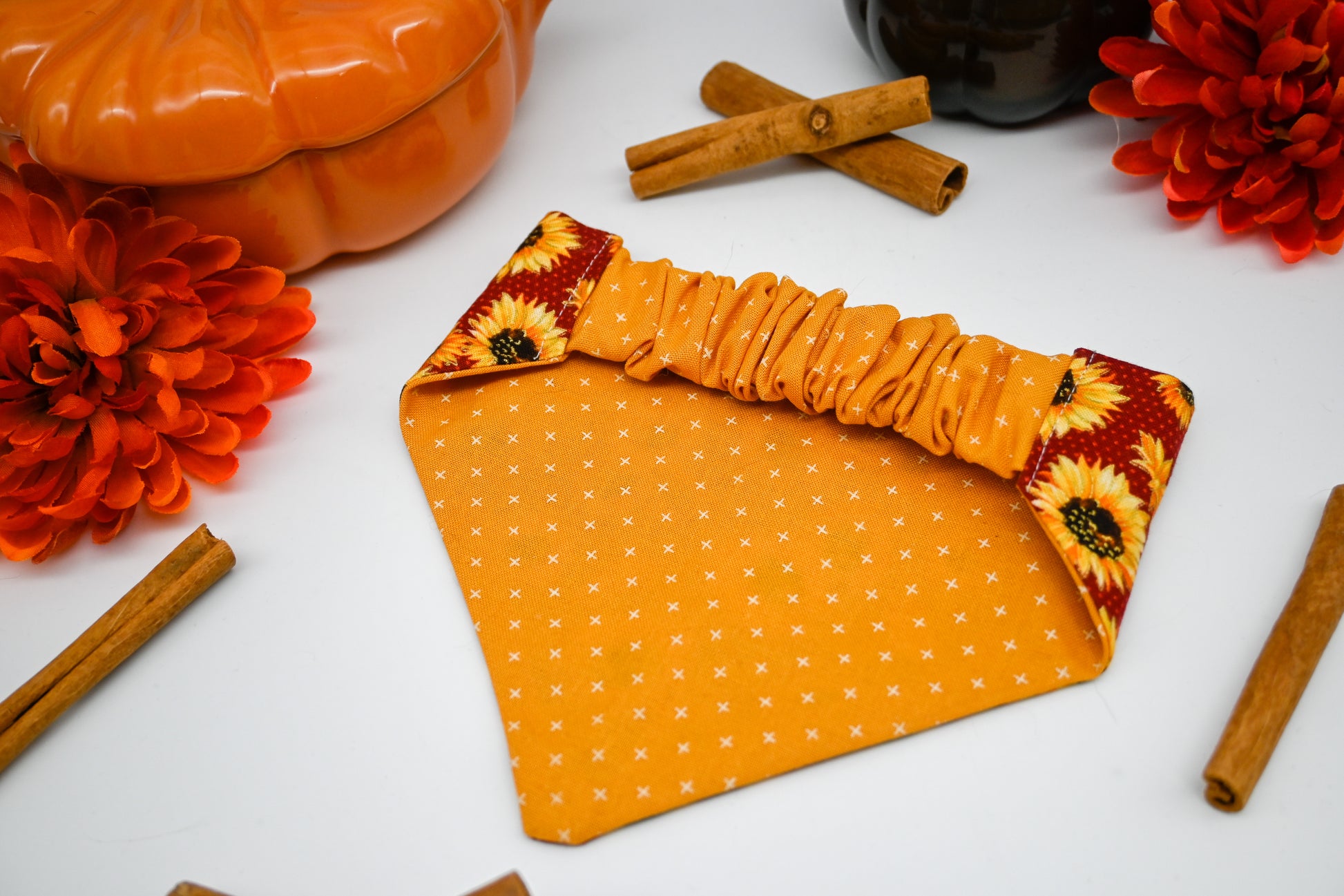 If your pet is the sunshine of your life, you love sunflowers, the colors ruby and honey, or just think your furry family member would look absolutely adorable in this sunny floral bandana, you absolutely need this in your life. Our reversible pet bandanas will look fashionable and fantastic no matter who you decide to put it on!