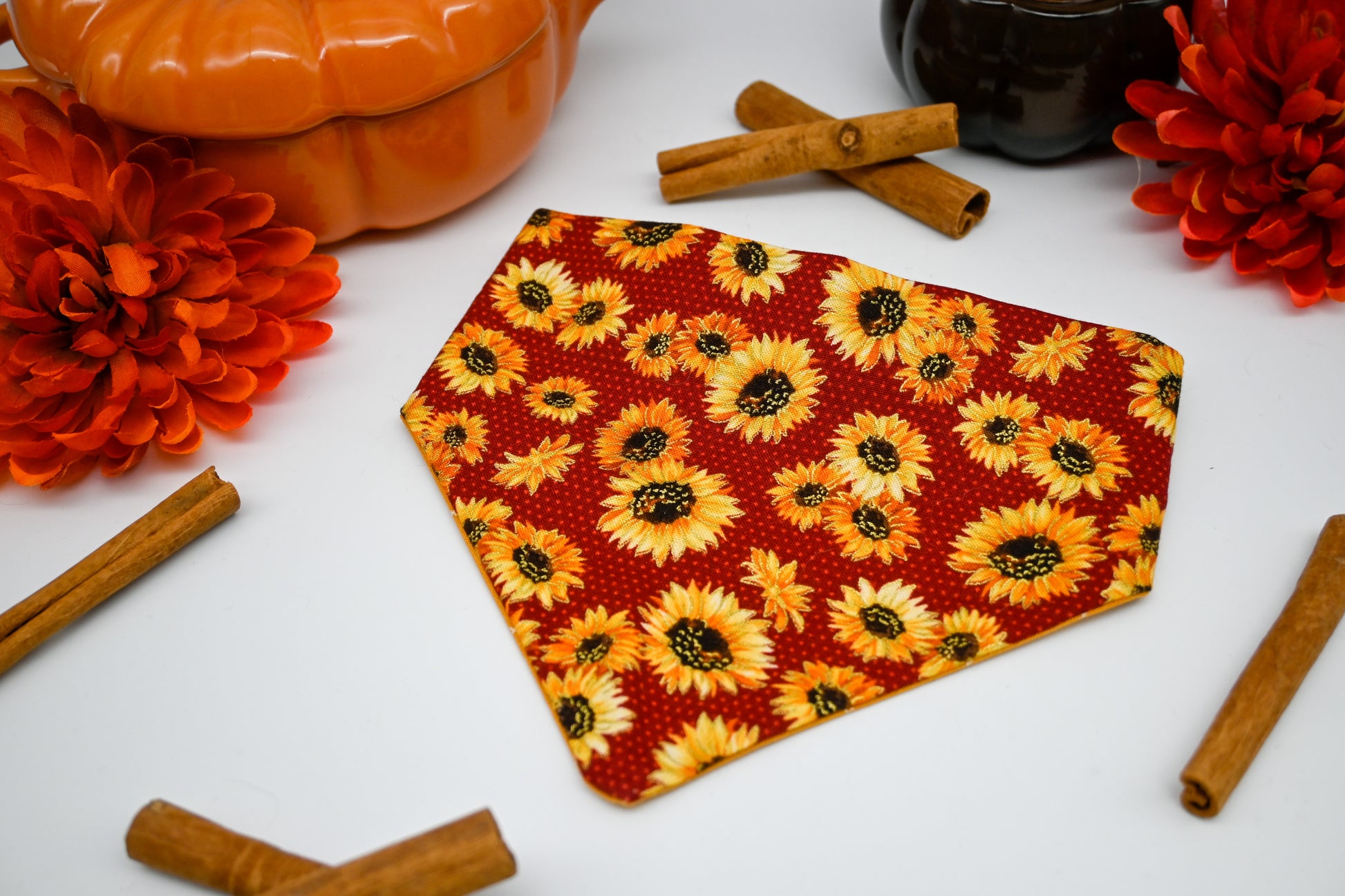 Reversible Pet Bandana - Red Sunflower Sunsets