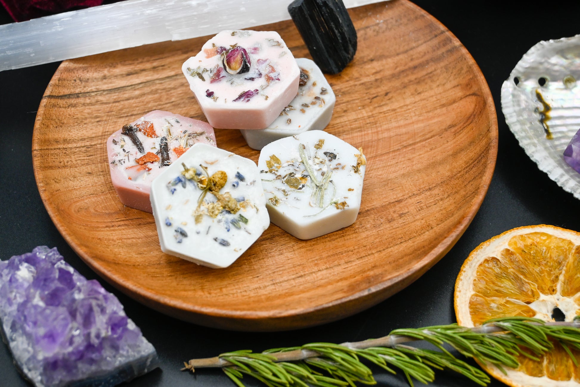 All of our melts are handmade with love and care in Seattle Washington, are toxin-free, sustainably made, environmentally friendly, vegan, and all materials used are obtained from supporting other small businesses like ourselves.