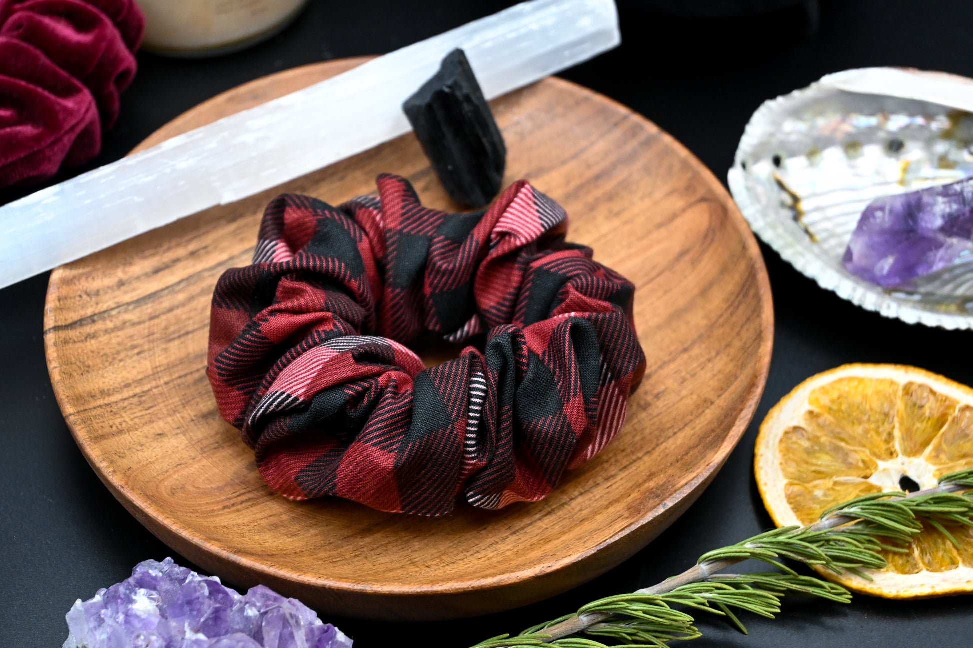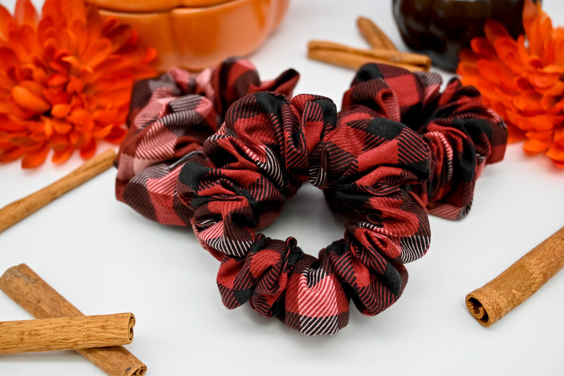 Whether you love the vibe of red plaid, like hunting, being a lumberjack/jill(?), or just love plaid, this scrunchie is for you. This shade of gorgeous red paired with the shades of black, grey and white will very quickly make this become your favorite new scrunchie. Get into the fall feeling with this perfect design before it sells out!