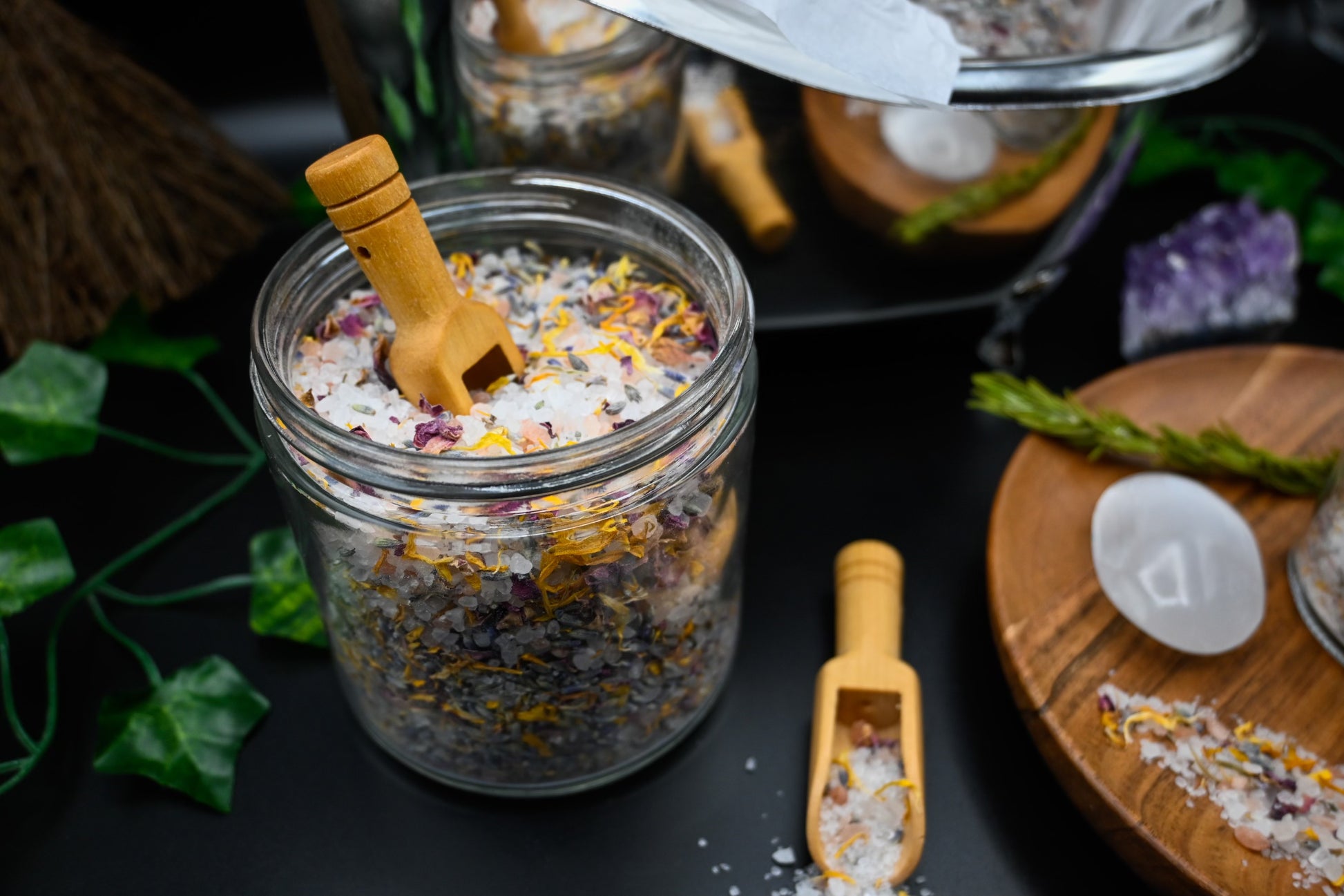 ❤️To use; simply sprinkle the desired amount into your bath either using the included wooden scoop, or directly from the jar. (3-4 scoops is usually good, but it all depends on your personal preference)