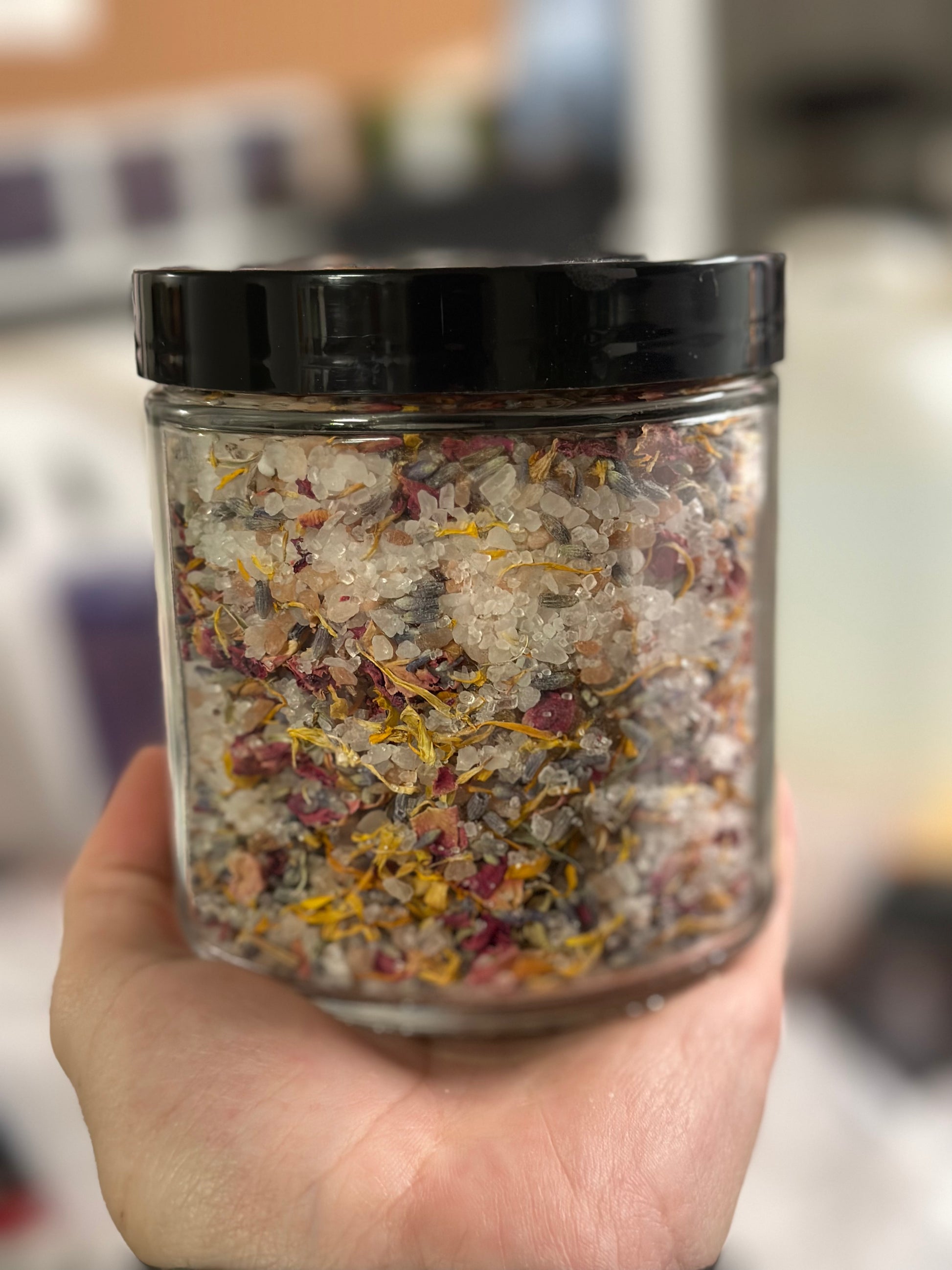 Essential oils: Utilized for aromatherapy for centuries. 100% locally made, our special essential oil blend opens your senses and allows deeper relaxation and healing. Allowing mental clarity, amplifying self-love, and reducing anxiety, one bath at a time. ♥