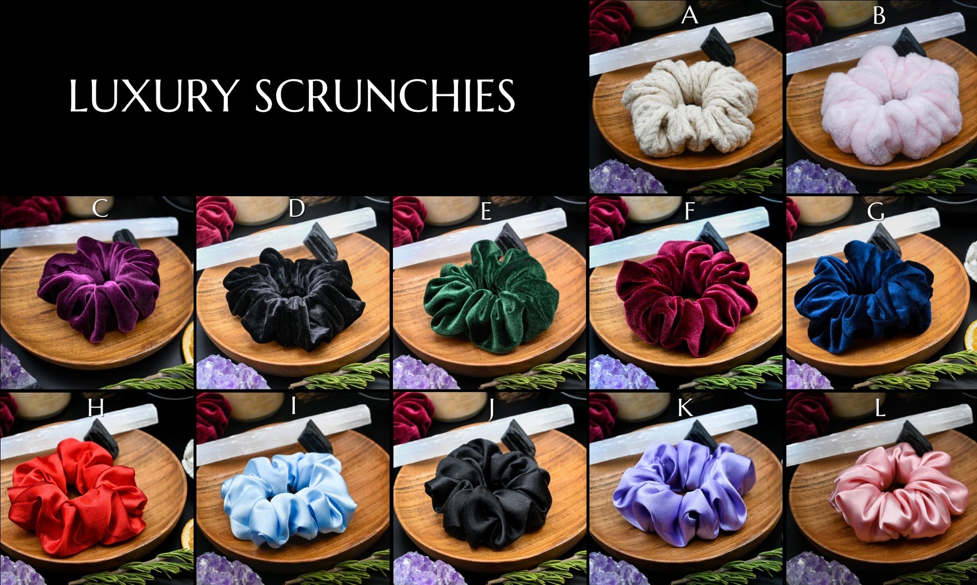Pick between our amazing regular scrunchies which are perfect for any type of hair, specifically long, thick or curly hair as we use wide band elastic -or- our adorable mini scrunchies which are also perfect for any type of hair, however these are specifically tailored for people who have shorter, finer hair!