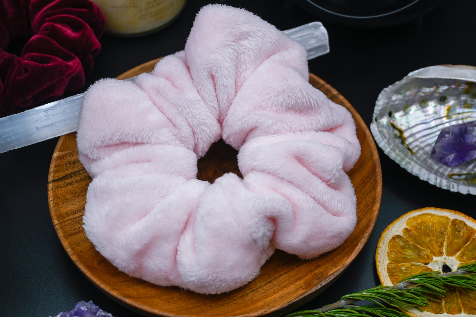 From VSCO Girls to 90s babies, or anyone who loves soft things: this lush and plush scrunchie is for you. Make a perfect statement with this cute fluffy scrunchie. Spice up (your life) any outfit with this super sweet accessory, look totally cute, and go make today super fly. Sweet baby pink, super plush and soft, AND amazing fabric? Oh yes gurl. 💅 We got you covered. Each piece is handmade with soft polyester fleece, wide elastic, and love.