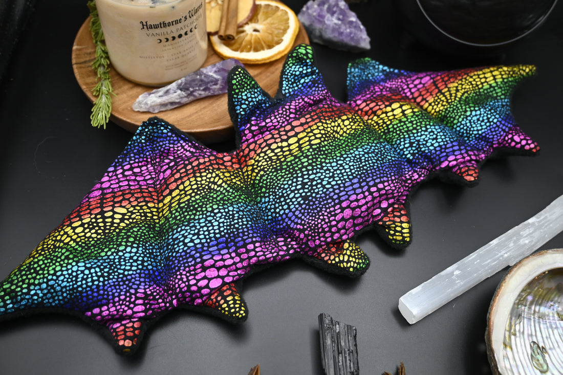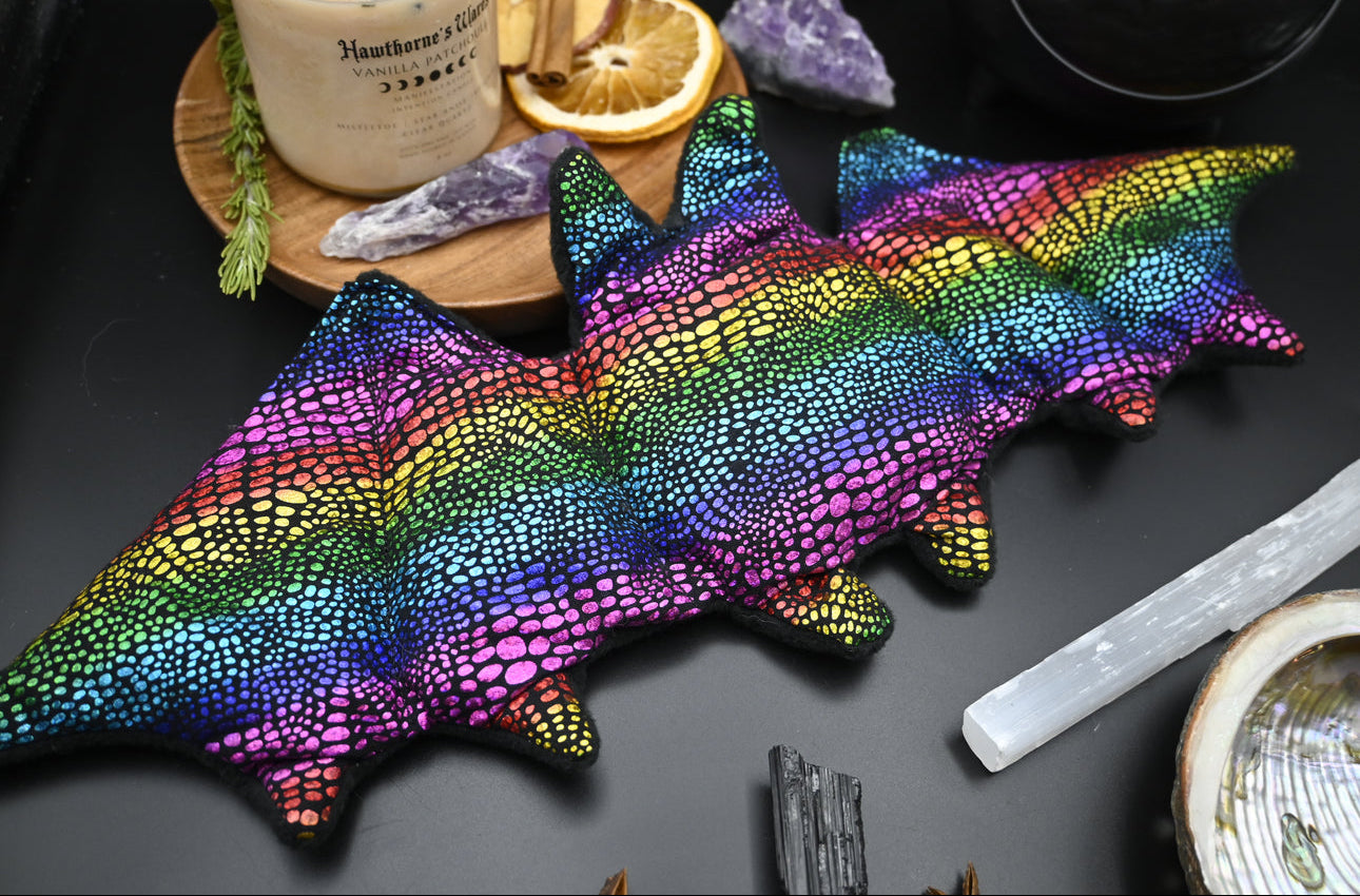 Have you been experiencing generalized aches or pains, arthritis pains, period cramps, headaches, sore or tight muscles, or just feeling cold? Basil the bat is here to help! Basil the heating pad bat loves to help warm any sore spot you may have and lift your spirits with his adorable little ears, round tummy, and sweet little feet, after warmed in your microwave of course. Look deep into his sweet soft face and let your stress melt warmly away. 🖤