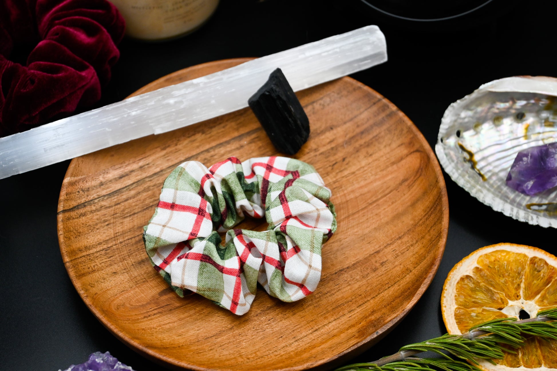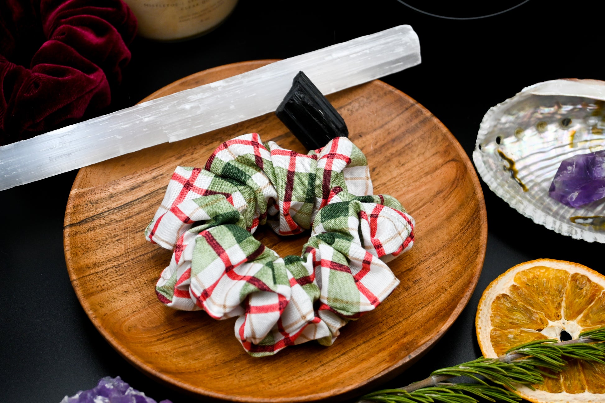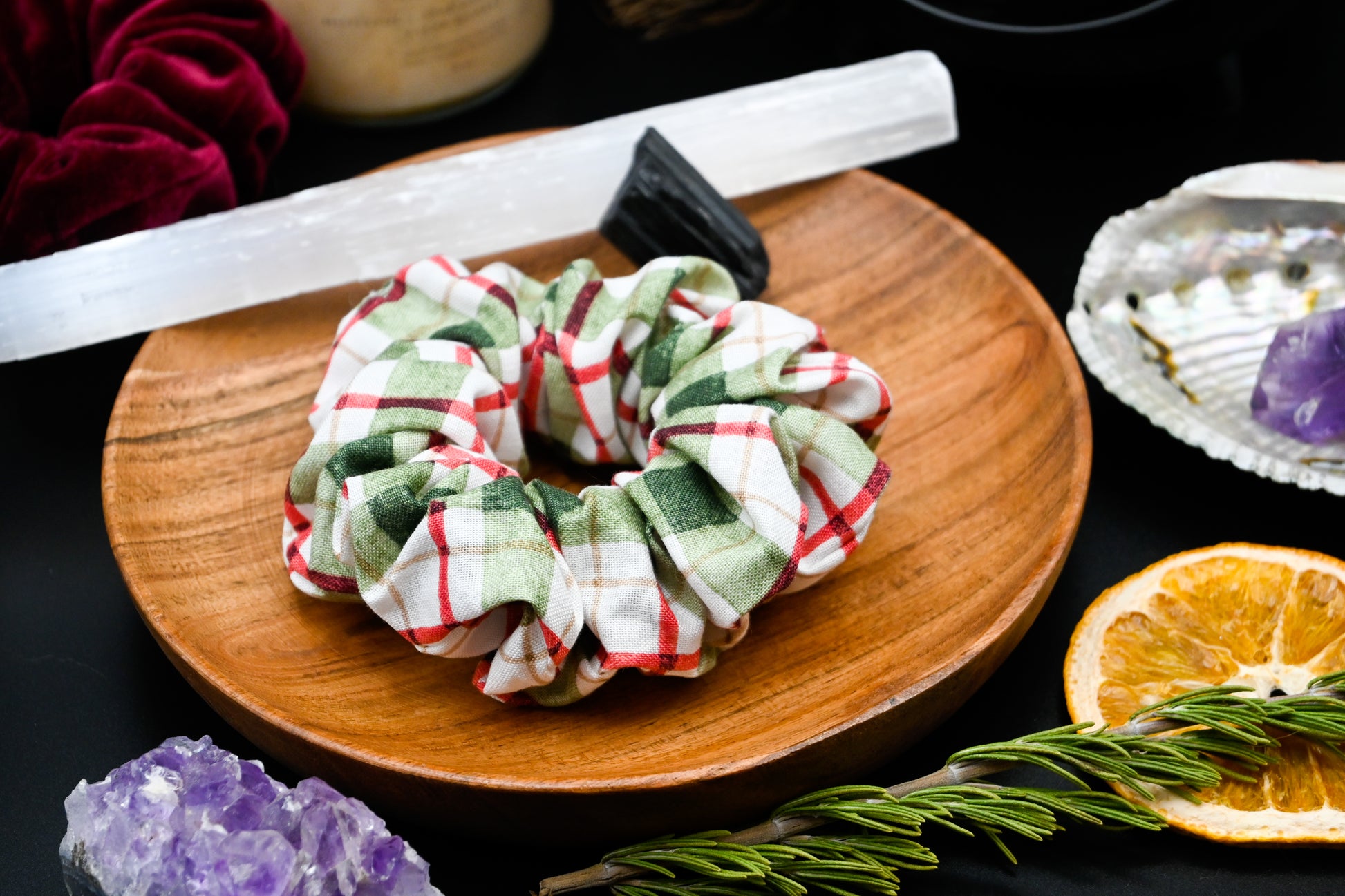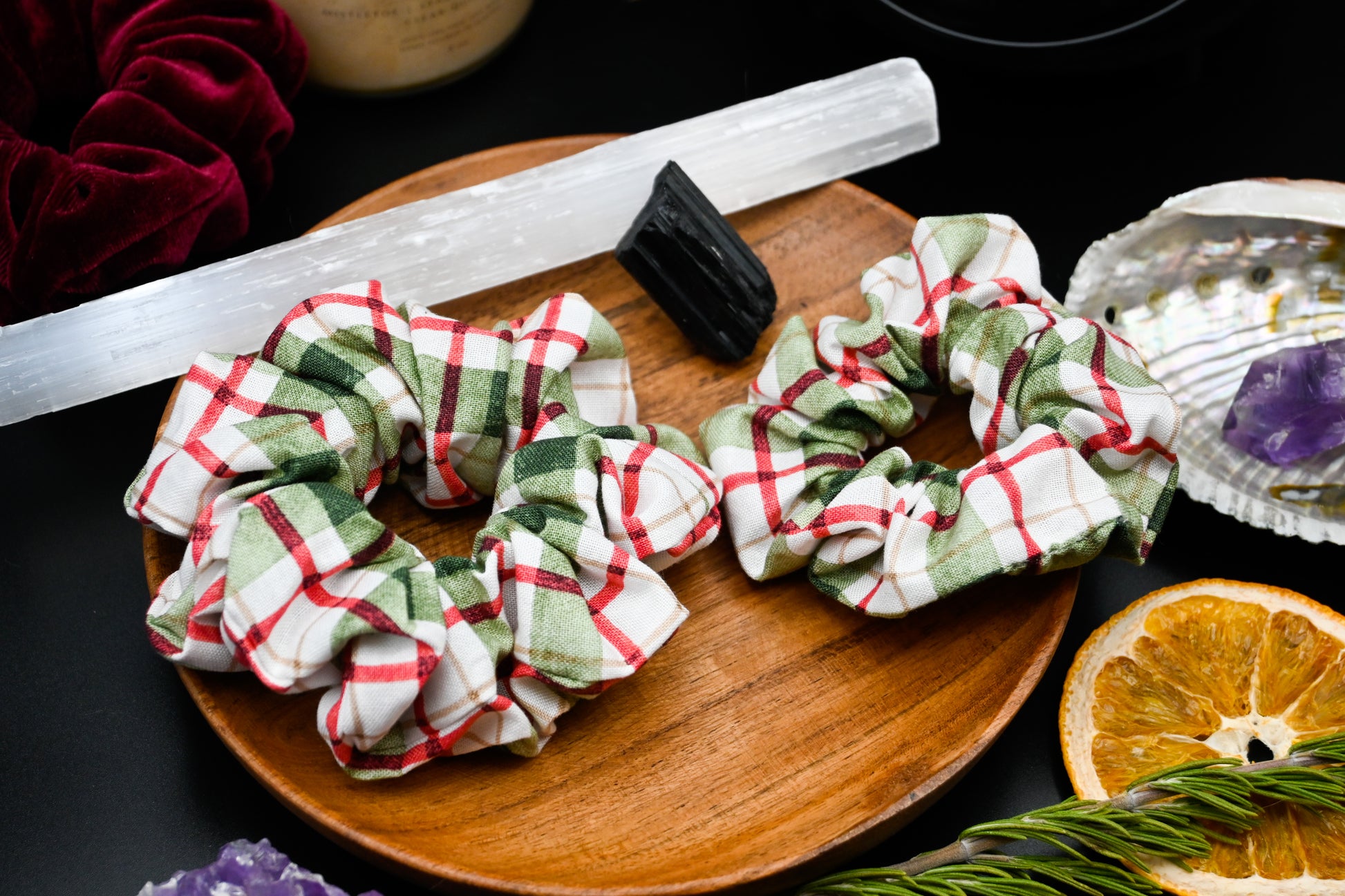 Cream, Red, and Green Plaid Scrunchie